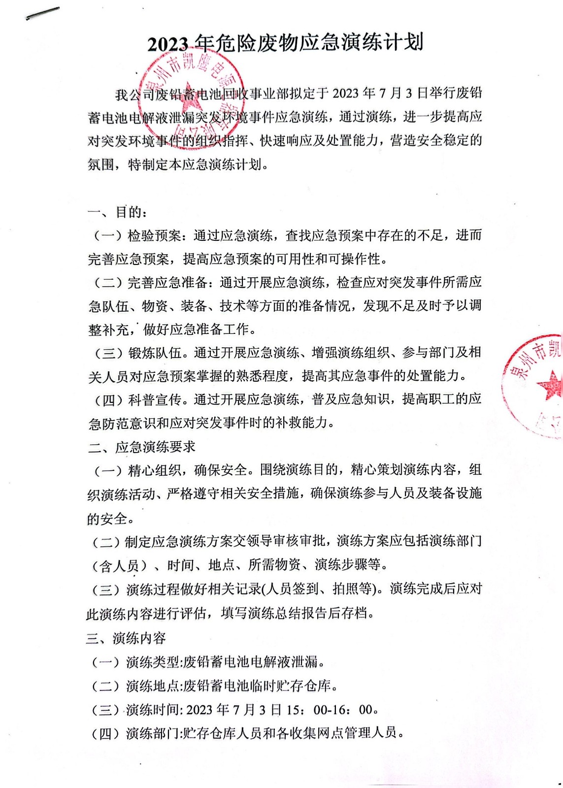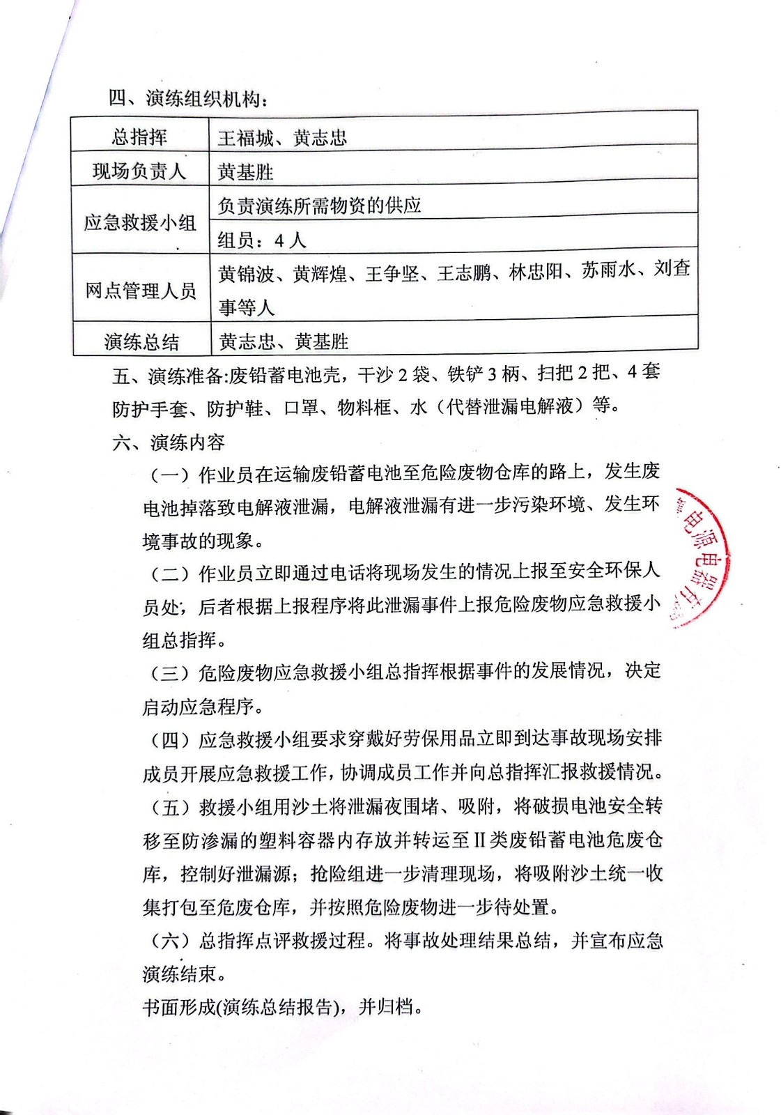 2023年突发环境事件(废铅蓄电池电解液泄露)应急演练演练过程和总结